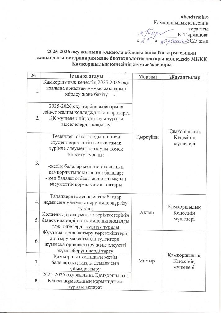 «Ақмола облысы білім басқармасының жанындағы ветеринария және биотехнология жоғары колледж» мемлекеттік коммуналдық қазыналық кәсіпорны